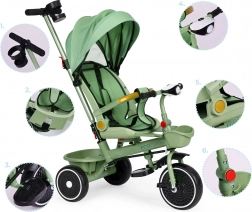 Dziecięcy trójkołowiec 2 w 1 z daszkiem i obrotowym siedziskiem ECOTOYS – zielony