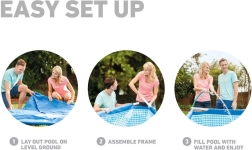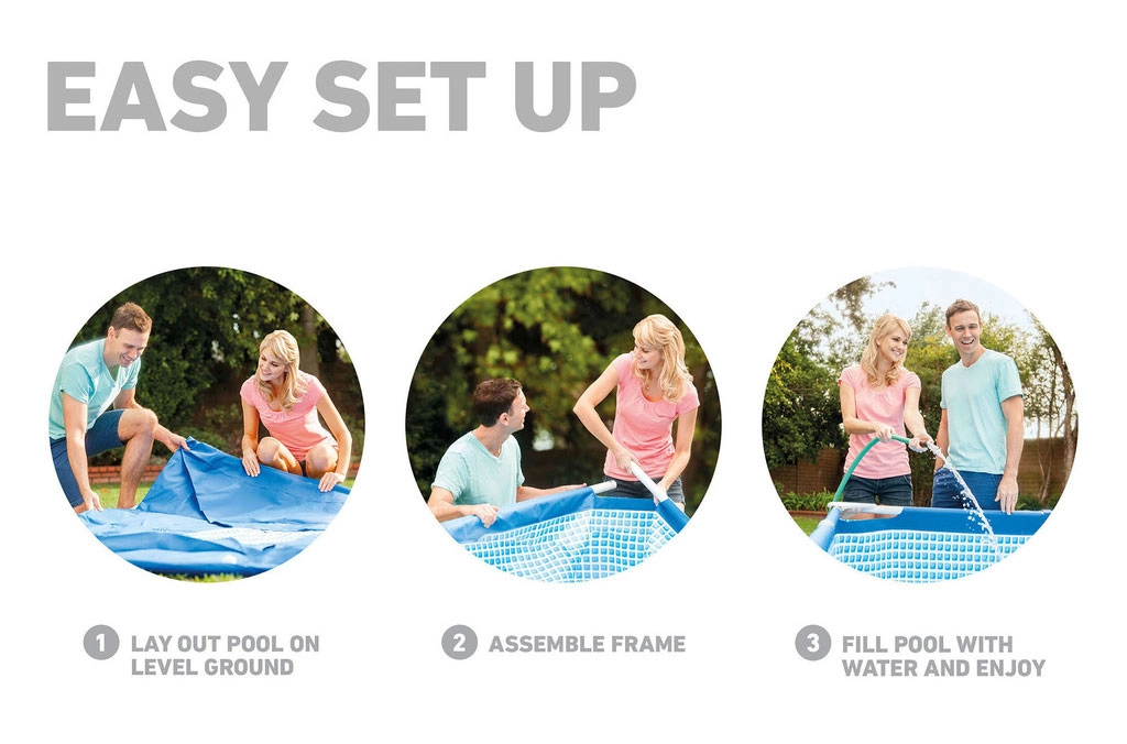 Ciesz się latem z wytrzymałym ogrodowym basenem INTEX, który łączy solidny stelaż i odporne 3-warstwowe PVC dla długiej żywotności i bezpiecznego kąpania. Dzięki pojemności 7127 litrów wygodnie pomieści całą rodzinę wraz z dmuchanymi akcesoriami.