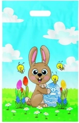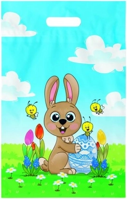 Wielkanocna torba foliowa z uchwytem to idealny dodatek do zakupów lub transportu wielkanocnych upominków dzięki swoim przestronnym wymiarom i solidnemu materiałowi.