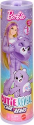 Odkryj magię niespodzianek z lalką Barbie Cutie Reveal w edycji CARE BEARS. W mięciutkim fioletowym kostiumie misia Troskliwe Serduszko znajdziesz stylową lalkę, mnóstwo akcesoriów oraz 10 niespodzianek, w tym magiczna zmiana koloru włosów. Kostium można przemienić w modną kurtkę, a duży misiowy kaptur służy jako legowisko dla mini misia. Świetny wybór do kreatywnej zabawy, przebierania i opowiadania historii.