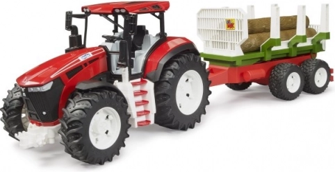 W zestawie znajdują się trzy kłody oraz odłączana przyczepa z bocznymi barierkami dla bezpiecznego transportu.