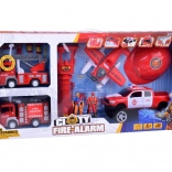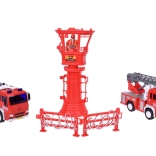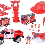 Zestaw zawiera pojazdy strażackie z realistycznym designem, w tym wysuwanym drabiną i armatką wodną, co zapewnia doskonałą zabawę w wyobrażeniowe gry.