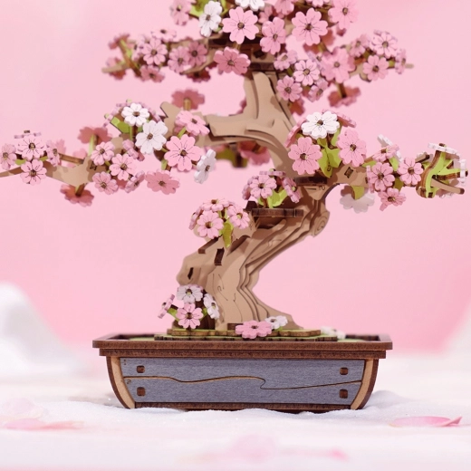 Ta dopracowana w detalach bonsai sakura wiernie oddaje delikatne różowo-białe kwiaty i elegancki kształt prawdziwego drzewka. Składanie jest intuicyjne, wszystkie elementy precyzyjnie do siebie pasują, a gotowy model jest stabilny i trwały. Bez konieczności użycia kleju czy narzędzi – wystarczy otworzyć pudełko i zabrać się do tworzenia.