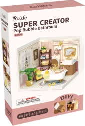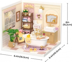 Stwórz własne łazienkowe diorama w delikatnych pastelowych tonach z wanną na nóżkach, lustrem, półkami i mnóstwem miniaturowych dodatków. Dzięki precyzyjnie wyciętym elementom ze stabilnych materiałów złożysz model łatwo i bez kleju – a efektem będzie solidna, przepięknie dopracowana mini scena idealna na półkę i na prezent.