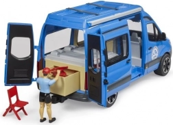 Wyrusz na przygodę z dopracowanym w detalach kamperem BRUDER MB Sprinter, który oferuje otwierane drzwi, przesuwne drzwi boczne, wysuwaną markizę oraz w pełni wyposażone wnętrze z podwójnym łóżkiem i aneksem kuchennym. W zestawie znajduje się figurka bworld oraz zestaw kempingowy ze stołem, krzesłami i naczyniami do realistycznej zabawy. Wykonano z wysokiej jakości ABS w Niemczech.