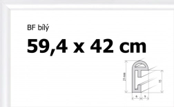 Ramka obrazkowa zawiera szkło z matowymi krawędziami o grubości 2 mm oraz podstawę z dwoma zawieszkami, które umożliwiają zawieszenie w pionie i poziomie. Profil plastikowej ramki ma wysokość 21 mm, a format ramki odpowiada standardowi A2 (59,4 x 42 cm).