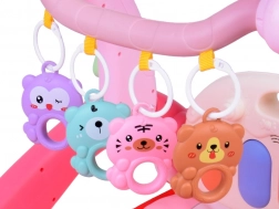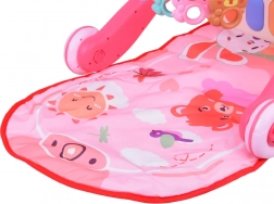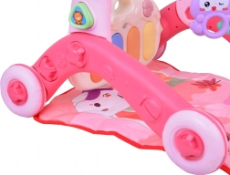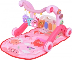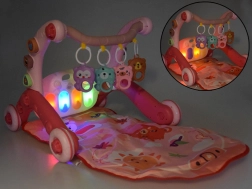 Wielofunkcyjny zestaw 3w1 rośnie razem z dzieckiem: od wygodnej zabawy na miękkiej macie, przez odkrywanie dźwięków na świecącym pianinku, aż po pierwsze kroki ze stabilnym pchaczem–chodzikiem. Kolorowe zawieszki i pastelowe klocki do sortera wspierają chwyt, koordynację ręka–oko oraz rozpoznawanie kształtów i kolorów.