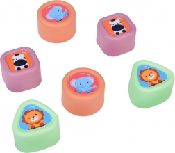 Urocze grzechoczące kółeczka ze zwierzątkami zachęcają do sięgania, wzmacniają małą motorykę i koordynację ręka–oko.