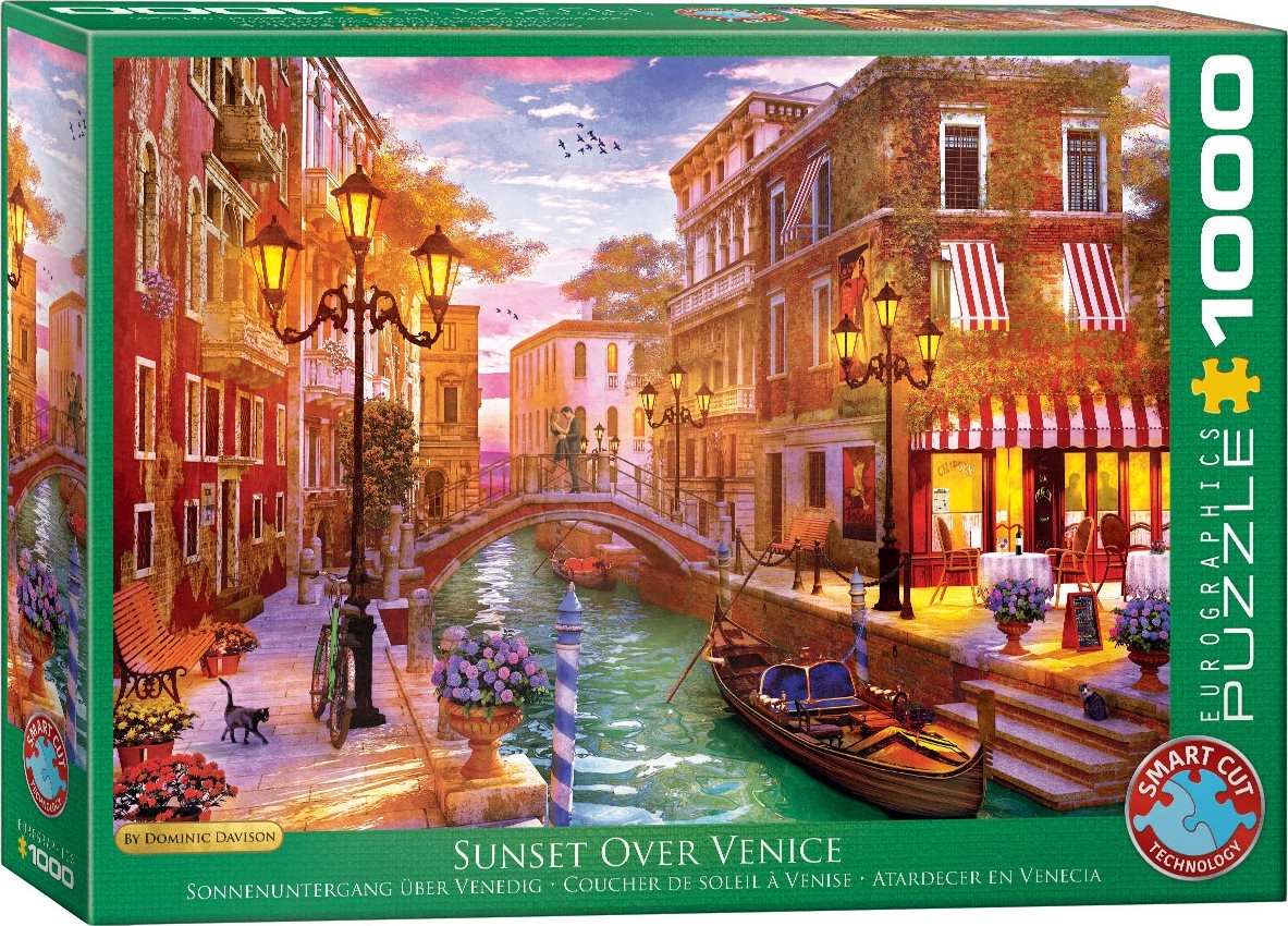 Zrelaksuj się i podejmij wyzwanie z wysokiej jakości puzzlami EUROGRAPHICS z motywem zachodu słońca nad Wenecją. Dzięki niezwykłym kształtom elementów i wykrojnikowi, który nie odwzorowuje standardowej siatki, układanie oferuje wyższy poziom trudności i długotrwałą zabawę. Po ułożeniu powstanie imponujący obraz o wymiarach ok. 67,63 × 48,89 cm.
