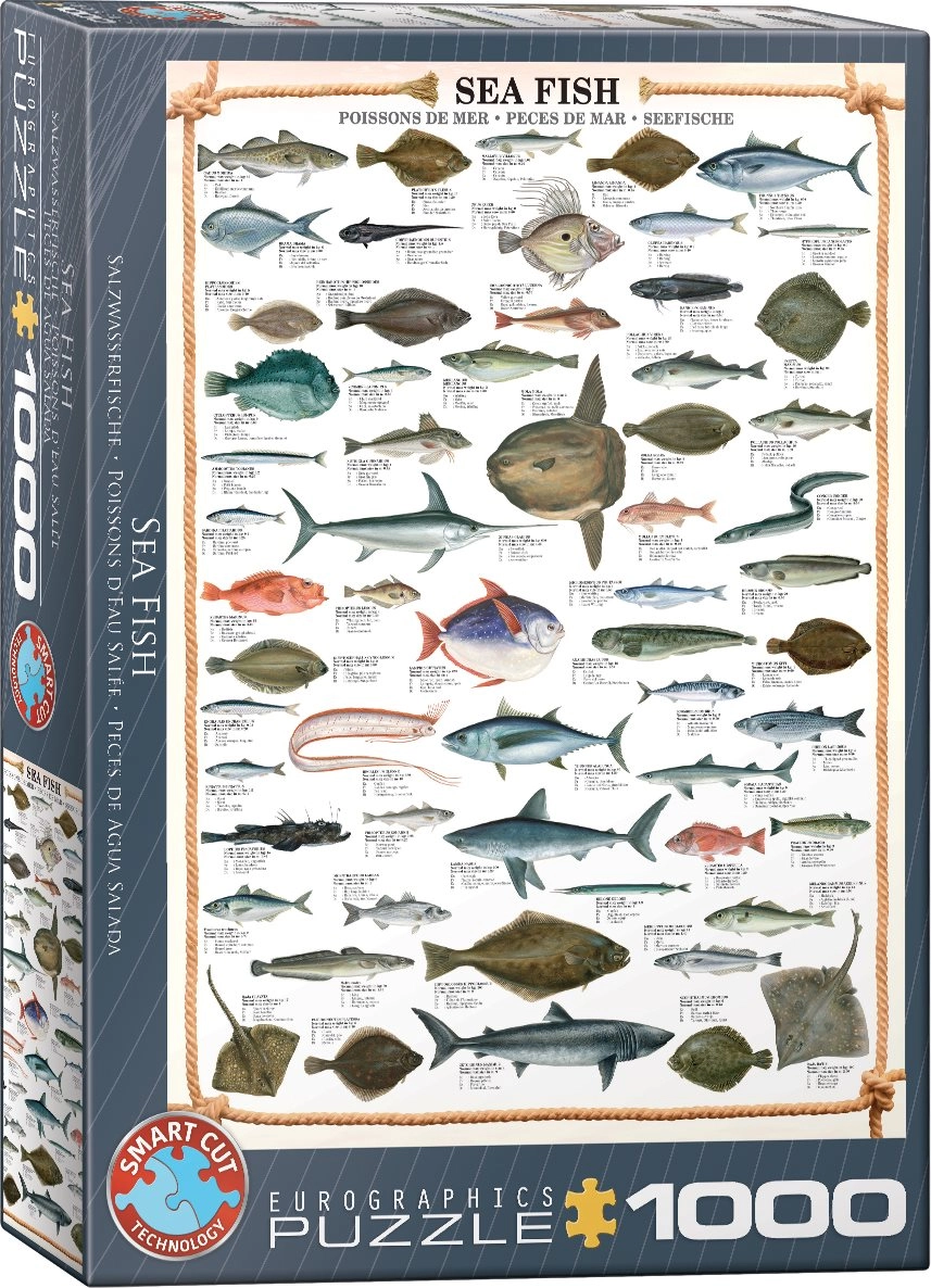 Odkryj fascynujący świat oceanów z wysokiej jakości puzzlami z 1000 elementów, przedstawiającymi najsłynniejsze gatunki morskich ryb. Przy każdej rybie znajdziesz nazwę, masę i długość, co czyni puzzle nie tylko zabawną, ale też edukacyjną aktywnością. Dzięki nietypowym kształtom elementów i nieszablonowej wykrojnikowi układanie jest trudniejsze i bardziej wciągające. Gotowy obraz ma wymiary ok. 48,89 × 67,63 cm.
