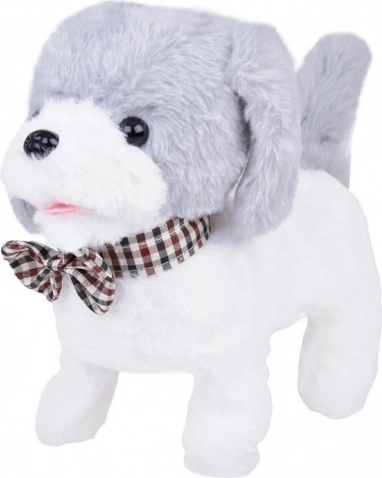 Uroczy interaktywny piesek Charlie w biało‑szarym kolorze z elegancką muchą potrafi chodzić, szczekać, skomleć i merdać ogonem. Wykonany z miękkiego pluszu do przytulania, a dzięki pilotowi w kształcie łapki łatwo uruchomisz dźwięki i funkcje ruchu. Świetny towarzysz dla dzieci marzących o własnym zwierzaku.
