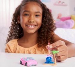 Wejdź do świata MINI BARBIE LAND – miejsca, gdzie wielkie marzenia nabierają mini rozmiarów. Ten uroczy zestaw oferuje pięknie zaprojektowany kabriolet z funkcją zmiany koloru pod wpływem temperatury wody, minilalkę BARBIE (ok. 3,5 cm) oraz znak drogowy ze skrzynką na listy dla jeszcze bardziej realistycznej zabawy.