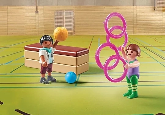 Wejdź do świata gimnastyki dziecięcej z zestawem PLAYMOBIL Special Plus. Dwie sportowe figurki, skrzynia gimnastyczna, piłki i kółka gimnastyczne pozwolą dzieciom tworzyć własne historie i scenariusze treningowe. Idealny do rozwijania wyobraźni oraz umiejętności ruchowych.