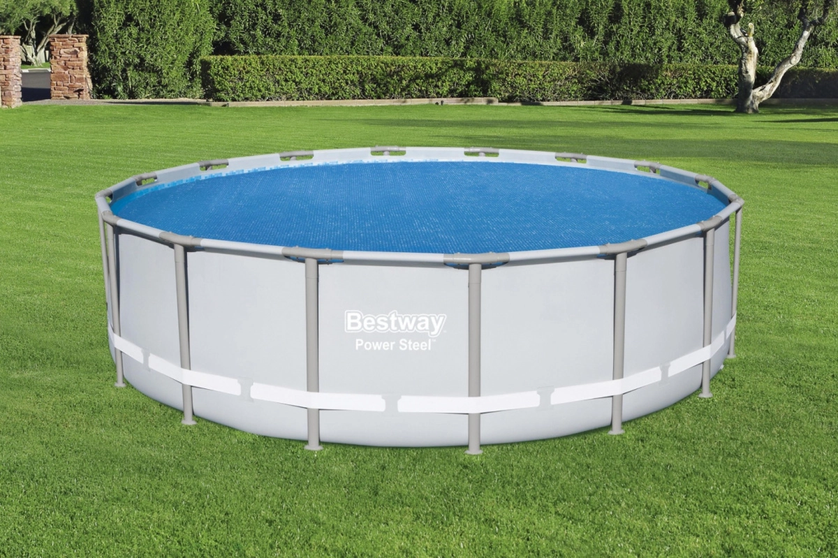 Solarny pokrowiec na basen BESTWAY to praktyczne akcesorium, które zwiększa komfort kąpieli i obniża koszty utrzymania. Struktura bąbelkowa wykorzystuje energię słoneczną do podgrzewania wody, a jednocześnie minimalizuje straty ciepła. Dzięki precyzyjnemu, okrągłemu kształtowi idealnie pasuje do basenów o średnicy 4,62 m.