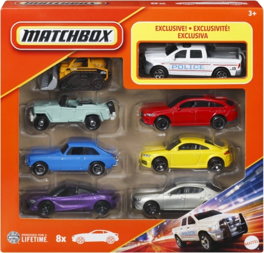 Zestaw samochodzików MATCHBOX oferuje 8 starannie wykonanych pojazdów w skali 1:64 z realistycznymi proporcjami, nadrukami i funkcjonalnymi detalami. Dzięki wytrzymałej konstrukcji die-cast doskonale nadają się do codziennej zabawy i do kolekcji.