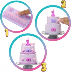 W zestawie znajduje się także magiczna zmiana wyglądu – dzięki ciepłej lub zimnej wodzie pojawiają się zabawne „imprezowe” detale. Kreatywną część zestawu uzupełnia masa plastyczna z foremkami do dekorowania dwupiętrowego tortu. To wszystko w atrakcyjnym prezentowym stylu, który aż zachęca do odkrywania niespodzianek.