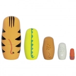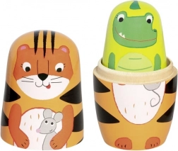 Ten oryginalny zestaw 5 drewnianych matrioszek w formie egzotycznych zwierząt (tygrys, krokodyl, małpka, koala i ptaszek) przynosi dzieciom radość z odkrywania rozmiarów i zabawę przy układaniu. Każda figurka jest starannie malowana, przyjemna w dotyku, a dzięki gładkiej powierzchni łatwo się otwiera i zamyka.