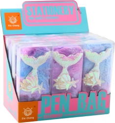 Pluszowy piórnik z syrenką, idealny dla dzieci, które kochają morze i jego tajemnice. Kombinacja delikatnych pastelowych kolorów, białej płetwy ogonowej z cekinami i muszlami tworzy unikalny dodatek do przyborów szkolnych.