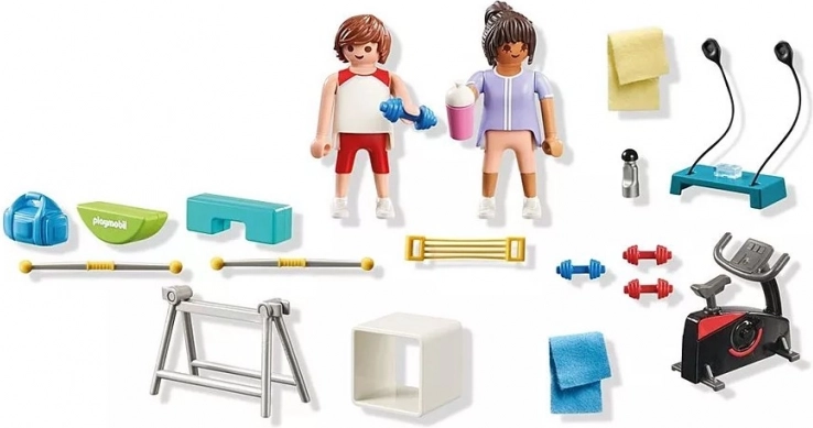 Z zestawem PLAYMOBIL My Life Trening fitness dzieci mogą spędzać każdy dzień w ruchu. Czekają na nie rowerek, stepper z ściąganymi paskami, hantle i drążki, które figurki mogą naprawdę trzymać. Nie brakuje też butelki na wodę, ręcznika ani boomboxa dla odpowiedniej atmosfery treningowej.