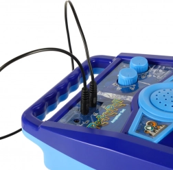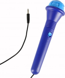 Mikrofon ma regulowaną wysokość, a wszystkie komponenty są podłączane przewodami do wzmacniacza dla większej autentyczności.