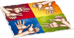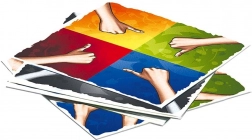 Kolorowa plansza z czterema kwadrantami w różnych barwach oferuje interaktywną zabawę pełną gestów.
