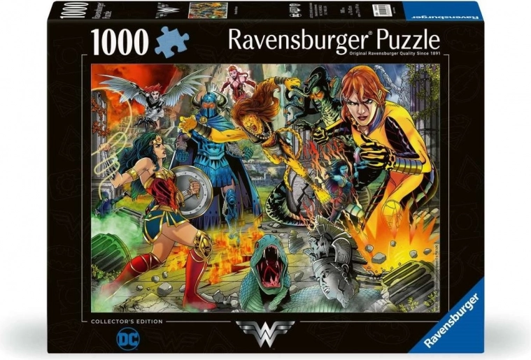 Ciesz się układankowym wyzwaniem z puzzlami Ravensburger z edycji DC Comics – motyw Wonder Woman o 1000 elementach i wymiarach 70 × 50 cm. Świetny wybór dla fanów komiksów i miłośników puzzli.