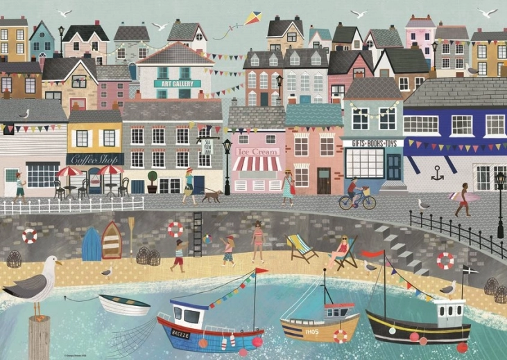 Zrelaksuj się przy stole z wysokiej jakości puzzlami RAVENSBURGER. Motyw spokojnej nadmorskiej przystani i 1000 elementów oferuje przyjemne wyzwanie, precyzyjny wykrojnik oraz jedwabiście gładką powierzchnię dla komfortowego układania.