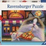 Puzzle „Happy Cat Pizza” od producenta Ravensburger to idealny sposób na zabawę w układanie. Wymiary ułożonego obrazka to ok. 26 x 18 cm i gwarantują frajdę dla małych fanów zwierząt i pysznego jedzenia. Wysoka jakość wykonania i solidne elementy sprawiają, że puzzle układa się łatwo, a dzieci mogą nimi bez trudu manipulować.