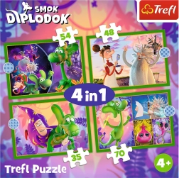 Odkryj urok bajkowego świata z puzzlami Świat Smoka Diplodoka. Ta kolekcja zawiera: