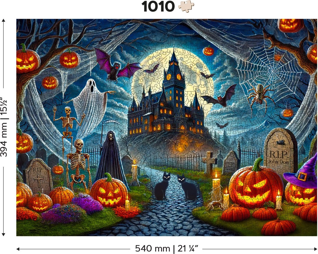 Drewniane puzzle WOODEN CITY z motywem halloweenowego zamku zapewniają unikalne wrażenia z układania. Każdy element jest precyzyjnie wycinany laserem, część z nich ma specjalne kształty zwierząt i może samodzielnie stać jako małe figurki. Dzięki różnorodnym kształtom układanie jest trudniejsze, a przez to jeszcze ciekawsze.