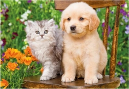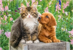 Cieszcie się wspólnymi chwilami z dwoma pięknymi motywami piesków i kotków w ogrodzie. Każdy obrazek ma 48 solidnych elementów, które dokładnie do siebie pasują i ułatwiają dzieciom układanie. Puzzle są świetnym wyborem zarówno do pierwszego samodzielnego układania, jak i do rodzinnej zabawy.