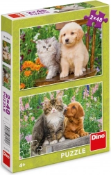 Puzzle Piesek i kotek w ogrodzie 2×48 elementów