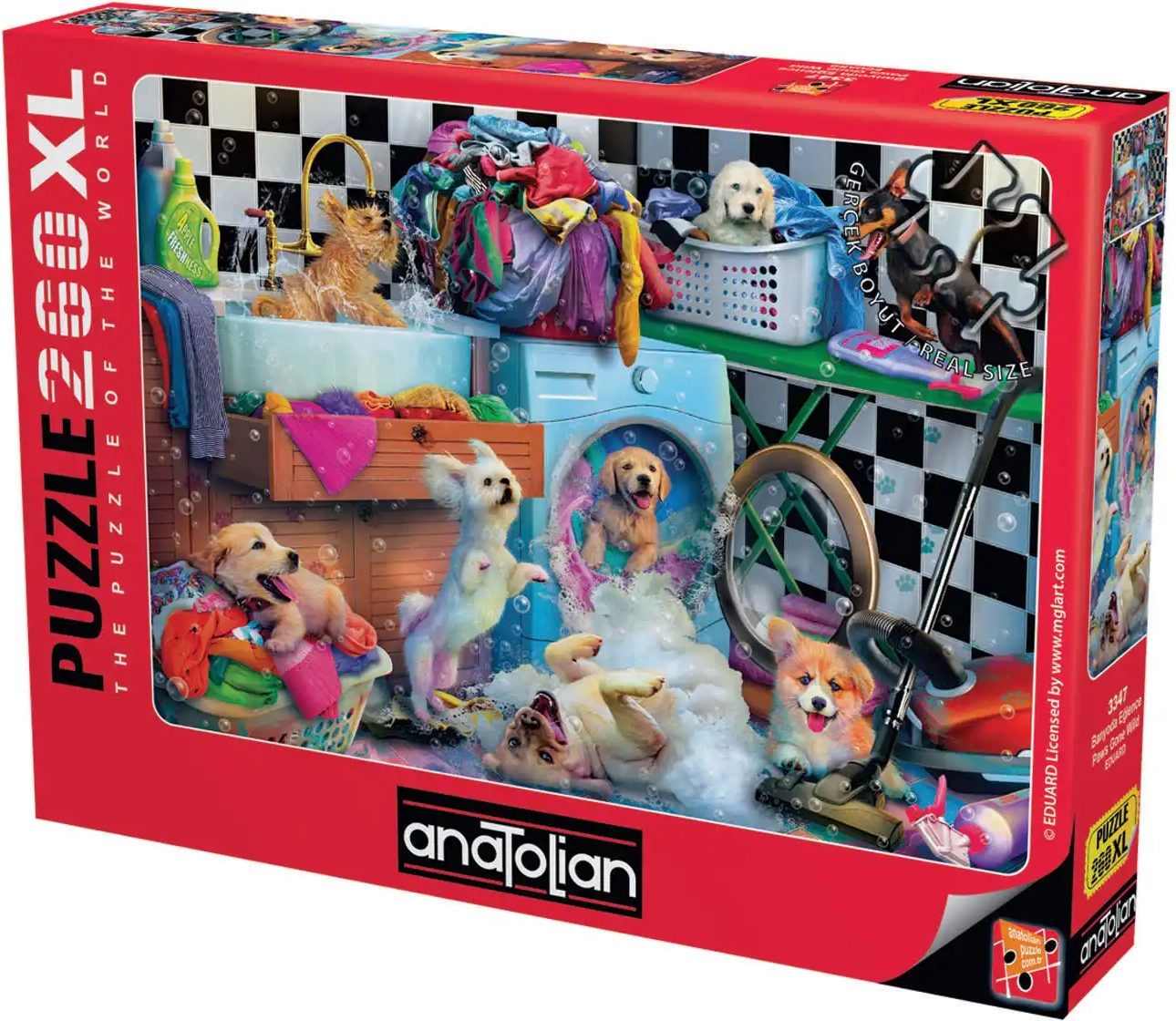 Zanurz się w świecie gier i zabawy z tym zachwycającym puzzle przedstawiającym urocze szczeniaki. Ułożone puzzle o wymiarach 48 × 33 cm zapewnią godziny radości i relaksu.