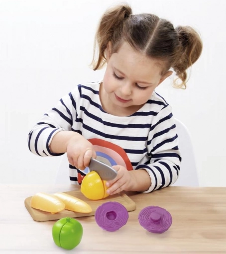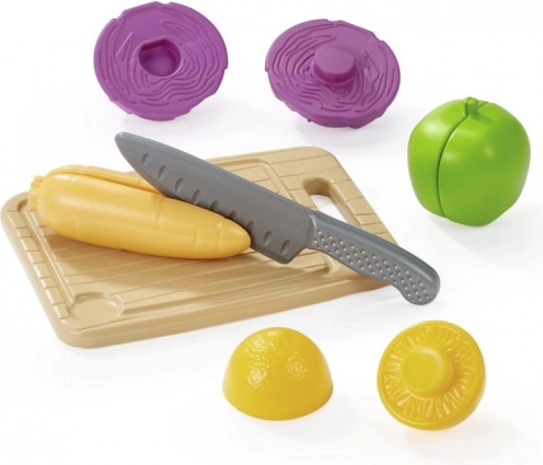Opanuj sztukę krojenia i gotowania z tym atrakcyjnym i kolorowym zestawem zabawkowym. Dzięki barwnej i różnorodnej selekcji plastikowych warzyw dzieci mogą wymyślać niezliczone gry i opowiadania, rozwijając swoją kreatywność i zdolności manualne. Zestaw zawiera deskę, nóż oraz różne rodzaje owoców i warzyw, takie jak jabłko, kukurydza i kapusta. Wspieraj dziecięcą wyobraźnię i ucz ich podstawowych umiejętności kuchennych.