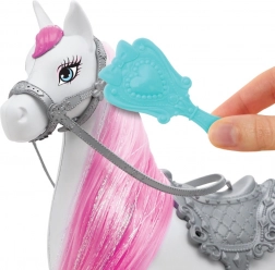 Biały konik z różową grzywą i srebrnym siodłem pozwoli księżniczce wyruszyć na wyprawy do krainy fantazji.