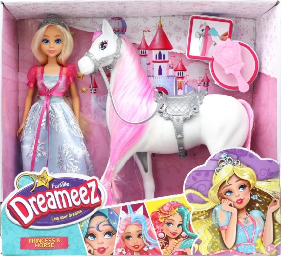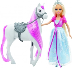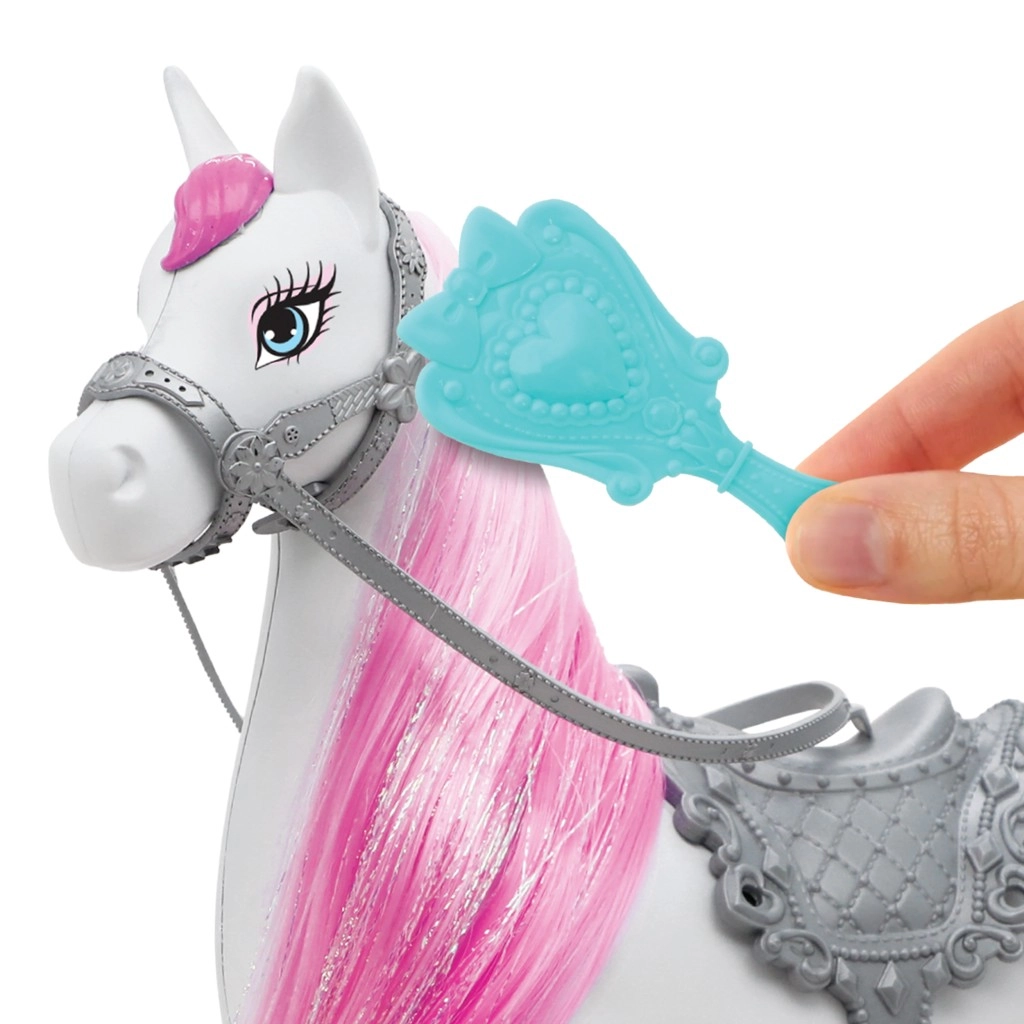 Lalka ma wysokość około 29 cm, nosi koronę i bogato zdobioną suknię, konik jest wyposażony w siodło i uzdę. Dzięki akcesoriom zabawa jest jeszcze bardziej realistyczna i wciągająca – od przejażdżek po pielęgnację grzywy.