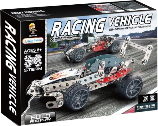 Złóż własny samochód wyścigowy z solidnej metalowej konstrukcji zawierającej 146 elementów. Części z metalu i plastiku łączy się za pomocą śrubek i nakrętek, dzięki czemu budowa jest prosta, zabawna, a jednocześnie stanowi wyzwanie dla małych i dużych konstruktorów.