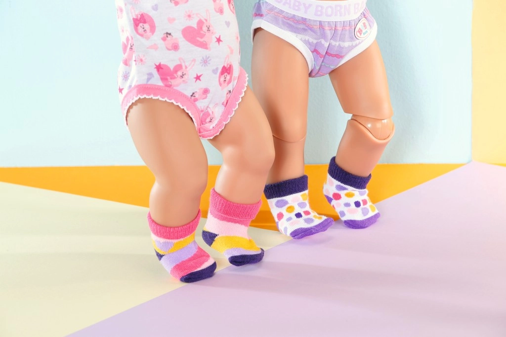 Znowu zniknęły skarpetki? Żaden problem, nadchodzi uzupełnienie! Z kolorowymi skarpetkami w zestawie po 2 pary BABY born nie musi się już obawiać zimnych stópek. Idealny dodatek do każdej lalki BABY born, który doda stylu i utrzyma Twoją ulubienicę w cieple.