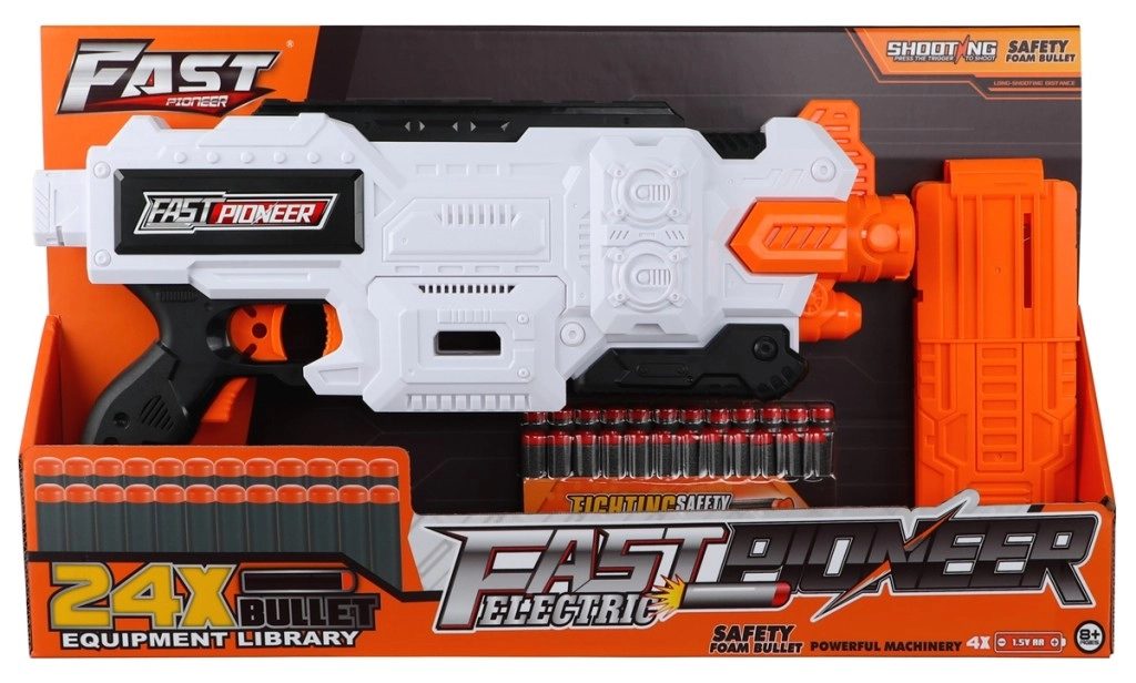 Ciesz się godzinami zabawy z tym szybkim i niezawodnym blasterem, który zachwyci dzieci i dorosłych.