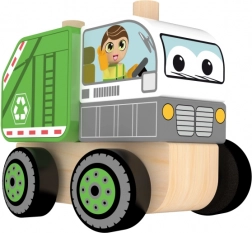 Zbuduj własny samochodzik z naturalnego drewna – wystarczy układać kolorowe klocki we właściwej kolejności na dwa patyczki solidnego podwozia z kołami. Zabawka w łagodny sposób wspiera motorykę małą, trenuje chwyt i rozwija koordynację ręka–oko.