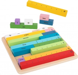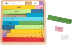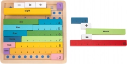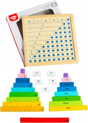 Zabawka spodoba się początkującym, którzy znają już cyfry i potrzebują poćwiczyć liczenie, dodawanie i odejmowanie. Bezpieczne, gładko wykończone drewno i nietoksyczne farby gwarantują bezpieczną zabawę. Po skończonej zabawie wszystkie elementy można odłożyć z powrotem do tablicy, więc wszystko jest zawsze na swoim miejscu.