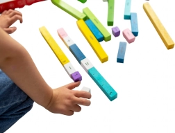 Dzieci manipulują elementami, sortują kolory i układają równania – rozwijają małą motorykę oraz logiczne myślenie w atrakcyjnej formie.