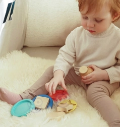 Kolorowe krążki i kształty zachęcają dzieci od 12 miesięcy do układania i sortowania, rozwijając małą motorykę i koordynację ręka–oko.