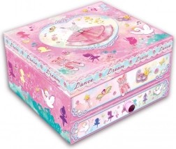 Przechowuj swoje skarby w pięknej muzycznej szkatułce z motywem baletnicy. Po nakręceniu i otwarciu gra delikatną melodię, która oczaruje każdą małą księżniczkę.