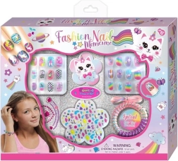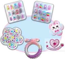 Ten kreatywny zestaw jest świetny dla małych elegantek, które lubią bawić się w manicurzystkę. Dzięki naklejanym paznokciom i ozdobnym kryształkom można w kilka chwil wyczarować oryginalny wygląd i świetnie się bawić podczas zdobienia.