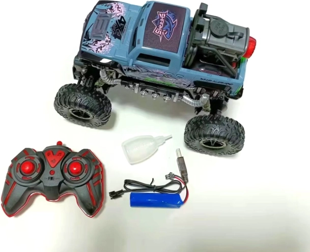 Poczuj adrenalinę z autem RC Rock Shark w niebieskim kolorze, oferującym efekty świetlne i dźwiękowe, realistyczny efekt mgły po dodaniu kropli wody, płynny ruch do przodu/tyłu i skręcanie oraz prędkość do 12 km/h z sterowaniem 2,4 GHz i zasięgiem 40–50 m.