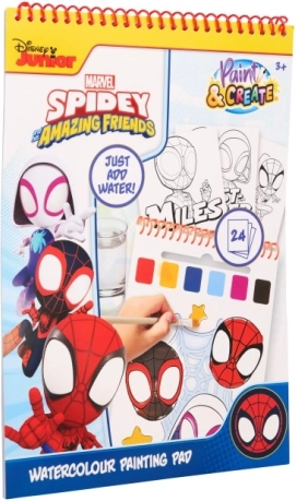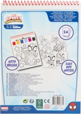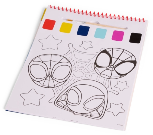 Te kolorowanki z farbami wodnymi ucieszą wszystkich małych fanów bohaterów MARVEL. Każda strona oferuje zabawne motywy SPIDEY i przyjaciół, które dzieci łatwo pokolorują wyłącznie przy pomocy wody. Zintegrowane kolory aktywują się po zamoczeniu pędzelka, więc nie potrzeba żadnego dodatkowego wyposażenia.