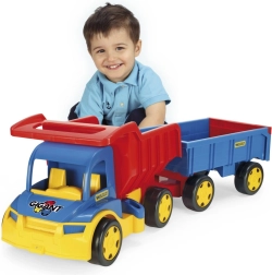 Ogromna ciężarówka z przyczepą marki Wader to duży i wytrzymały zestaw do zabawy dla dzieci. Ten kolorowy zestaw zapewnia dzieciom godziny rozrywki, wspiera koordynację ruchową i wyobraźnię.