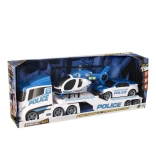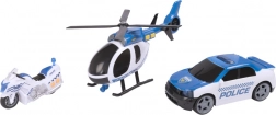 Zawiera samochód transportowy, helikopter i radiowóz do realistycznej zabawy.