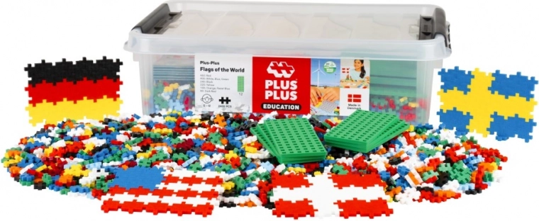 Plus-Plus box Flagi oferuje bogaty zapas elementów do tworzenia kolorowych motywów i flag narodowych. Dzięki broszurze z konkretnymi szablonami i zadaniami dzieci łatwo rozpoczną zabawę, która wspiera małą motorykę, logiczne myślenie i kreatywność.